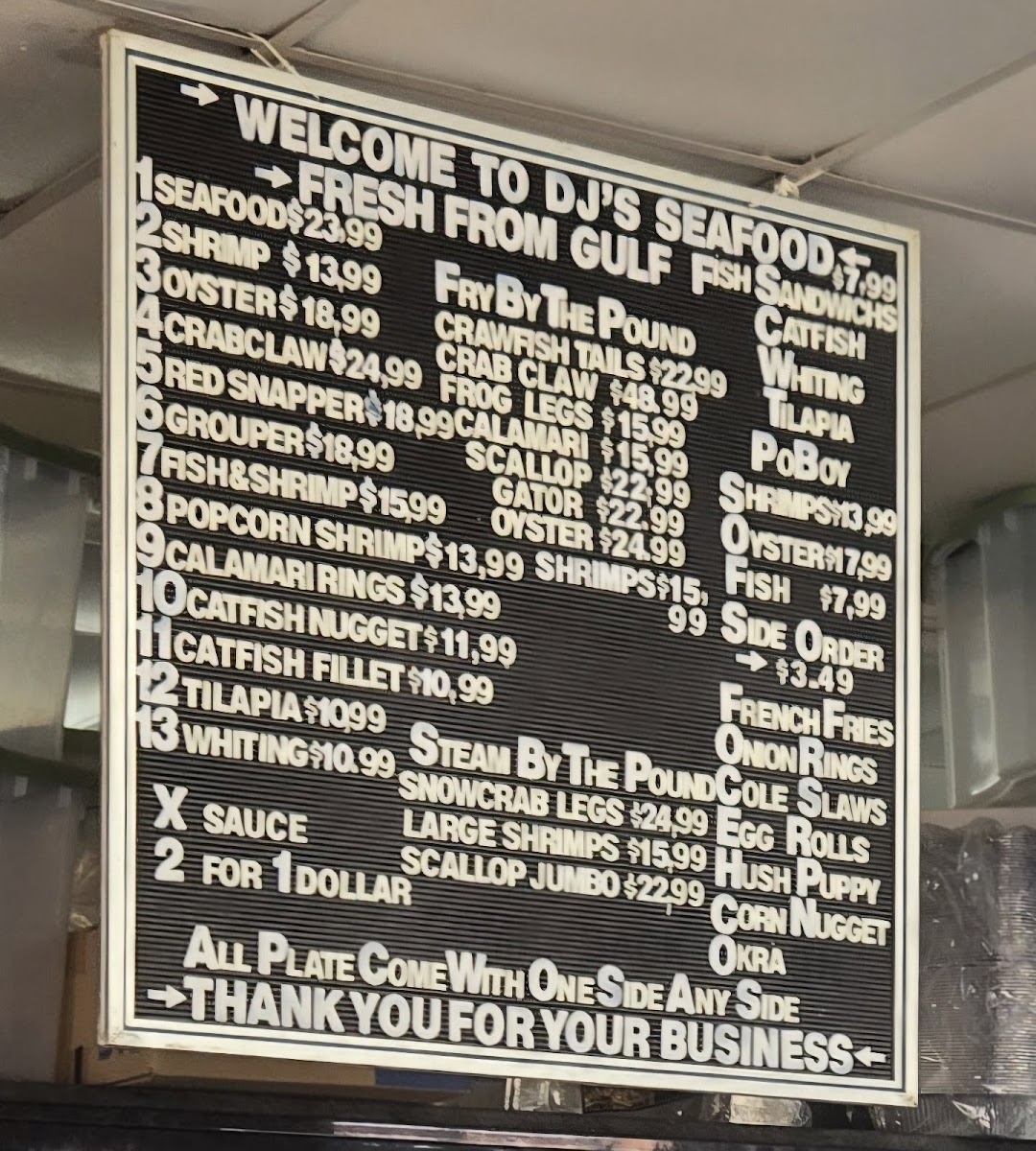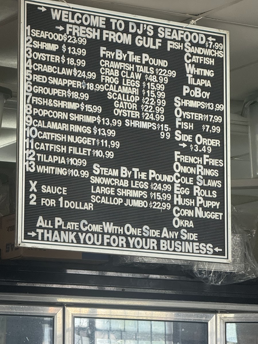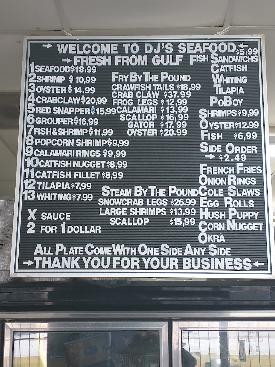 DJ's Seafood offers a straightforward menu focused on fresh, well-prepared seafood in a casual, no-frills setting. The selection features comforting, hearty dishes that make for satisfying lunches or relaxed dinners. Whether you're stopping by to pick up market-fresh seafood to cook at home or opting for their cooked-to-order platters, the menu reflects a down-to-earth approach where quality and portion size are clear priorities.